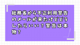 身近な注意ごと 総務省から不正利用警告のメールが来たけどどうしたらいい?警告は本物? 総務省を名乗る不正利用警告のメールが届くケースが増えており、受信者の間で不安が広がっています。 このようなメールは、公式... 2025.09.18 身近な注意ごと