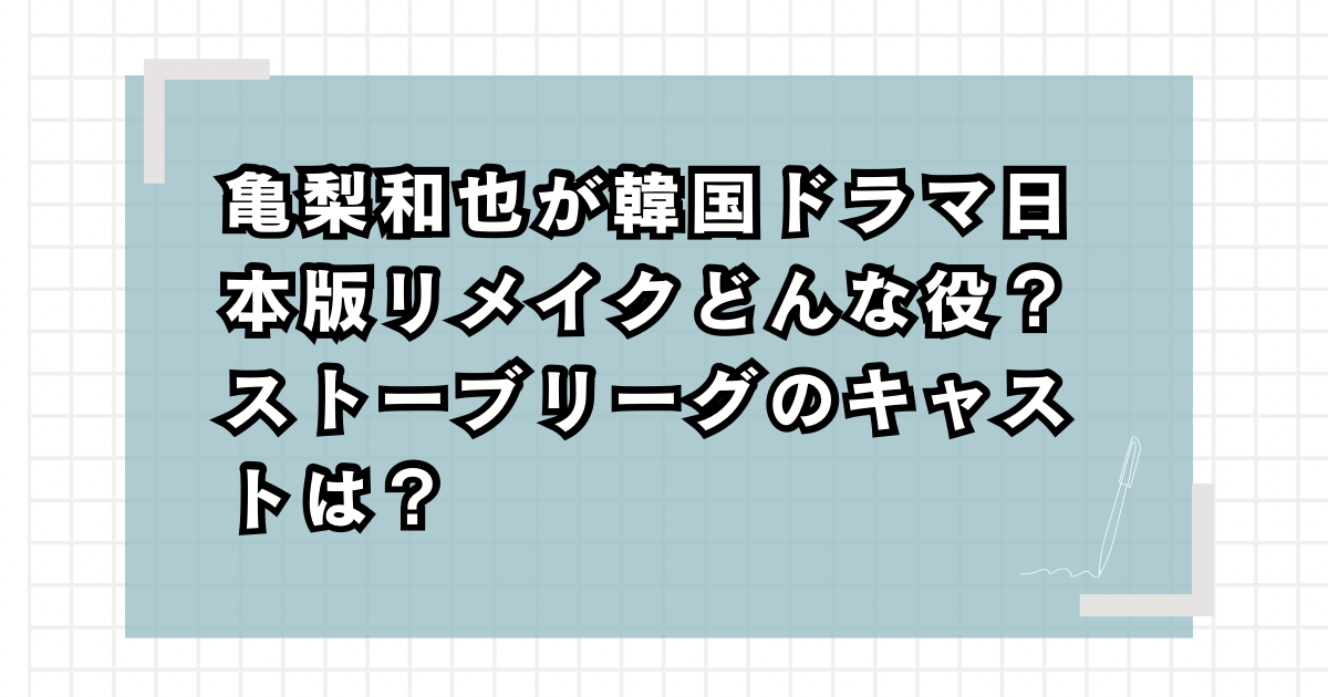 本記事では、そんな亀梨和也の新たな挑戦と、韓国ドラマ『ストーブリーグ』リメイクの詳細について、わかりやすく解説していきます。