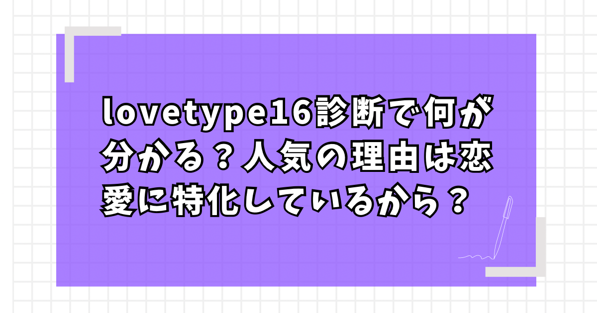 恋愛の価値観や自分の行動パターンを客観的に知るきっかけとして、近年注目を集めているのが「lovetype16診断」です。